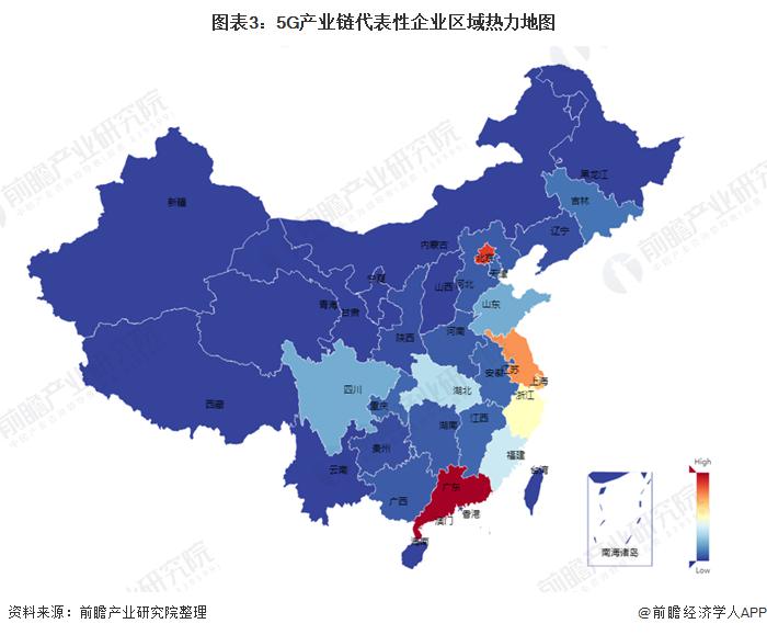 5G 產業鏈代表性企業區域熱力圖:廣東發展優勢明顯
