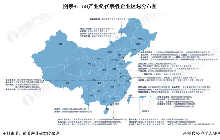 5G 產業鏈主要包括 5G 技術、5G 網絡、5G 終端和 5G 應用。其中,基站建設為 5G 網絡的基礎。高端芯片發展較慢,為產業鏈的薄弱環節。產業鏈的代表企業主要分布在廣東、北京、江蘇、上海、浙江等地區。目前,廣東的 5G 產業領跑全國。