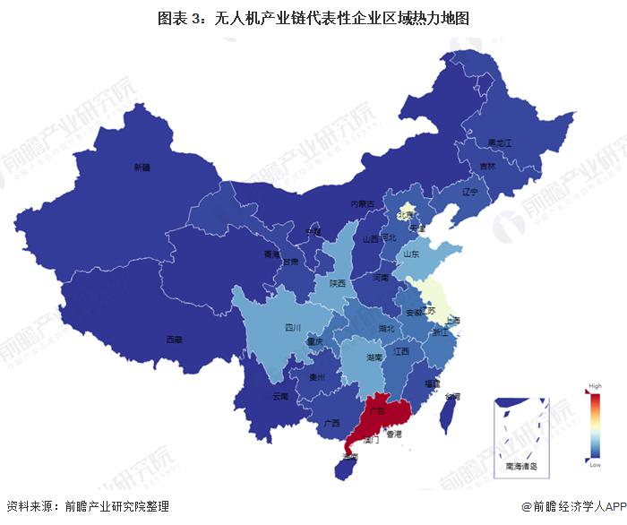 無人機產(chǎn)業(yè)鏈區(qū)域熱力圖:廣東的無人機產(chǎn)業(yè)鏈代表性企業(yè)聚集程度最高