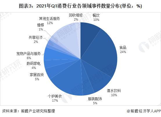 在食品領域中值得注意的是,健康類食品和方便類食品的事件總數不相上下,側面反映了在食品領域市場中,健康類食品與方便類食品營造了一個較為 " 特殊 " 的市場環境,既對便捷性有要求,又對食品的健康程度相對重視。