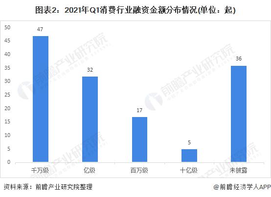從數量來看,2021 年一季度消費行業共發生 137 起投融資事件。分月來看,2021 年 1-3 月的投融資事件數量分別為 45 起、34 起和 55 起投融資事件數量。