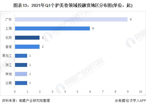 從事件數量來看,2021 年一季度共有 23 起個護美妝領域投融資事件。1 月、2 月和 3 月的數量分別為 8 起、6 起和 9 起。