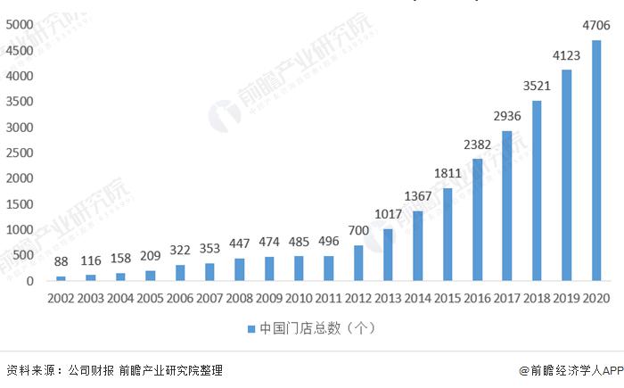圖表 2:2002-2020 年星巴克中國(guó)門店總數(shù)(單位:個(gè))