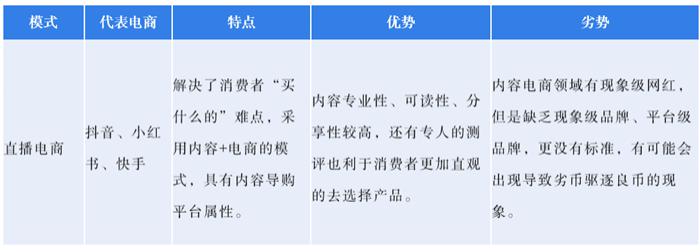 直播電商抖音、小紅書、快手解決了消費者 " 買什么的 " 難點,采用內容 + 電商的模式,具有內容導購平臺屬性。內容專業性、可讀性、分享性較高,還有專人的測評也利于消費者更加直觀的去選擇產品。內容電商領域有現象級網紅,但是缺乏現象級品牌、平臺級品牌,更沒有標準,有可能會出現導致劣幣驅逐良幣的現象。