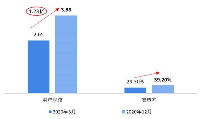 隨著疫情期間用戶線上消費習慣的加速養成,直播電商已經成為一種廣泛受到用戶喜愛的新興購物方式。第 47 次《中國互聯網絡發展狀況統計報告》數據顯示,截至 2020 年 12 月,我國電商直播用戶規模為 3.88 億,較 2020 年 3 月增長 1.23 億,滲透率為 39.2%。