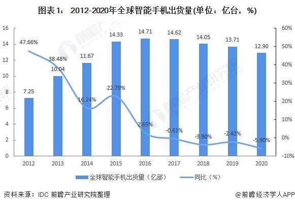 智能手機是目前全球手機市場的主流產品,因此各大機構對手機出貨量的統計以智能手機為主。全球著名調查機構 IDC 發布 2020 年全球智能手機出貨量達到 12.9 億臺,同比下降 5.9%。值得一提的是,這是全球智能手機出貨量連續第四年下滑。