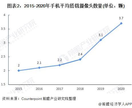根據 Counterpoint 統計,2020 年平均每部智能手機鏡頭數量都在 3.7 以上,其中四顆及以上攝像頭的手機占智能手機市場的 29%。預計到 2023 年,多后置攝像頭的手機比例將達到 90% 以上。