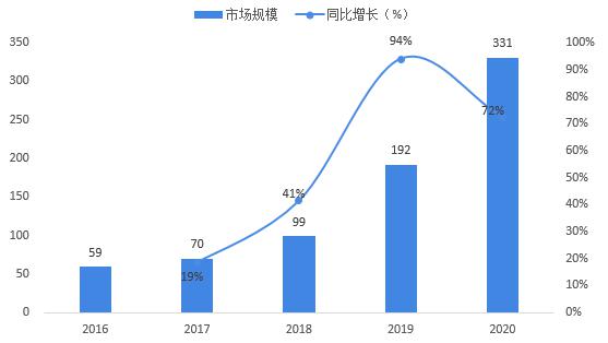 iResearch 圖表 4:2016-2020 年中國家用智能視覺產品市場規模(單位:億元,%)