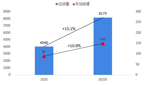 iResearch 圖表 5:2020-2025 年中國家用攝像頭產品出貨量與市場規模(單位:萬臺,億元)