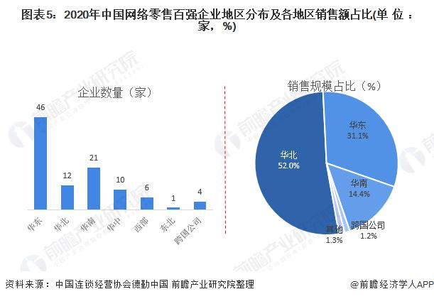 從網(wǎng)絡(luò)銷售額來看,華北企業(yè)網(wǎng)絡(luò)銷售額占比最高,達(dá) 52%; 其次為華東地區(qū),企業(yè)占比 31.1%,華南地區(qū)企業(yè)占比 14.4%,跨國企業(yè)占比 1.2%,華中、西部、東北地區(qū)占比較少,均小于 1%。