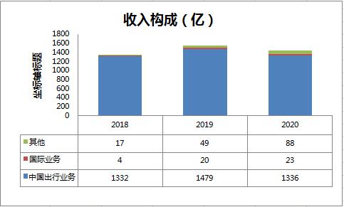 交易額總量之下,滴滴 2018-2020 年的營業收入分別為 1353 億、1548 億和 1417 億。由于 2020 年受到疫情影響,所以收入沒有實現明顯增長。