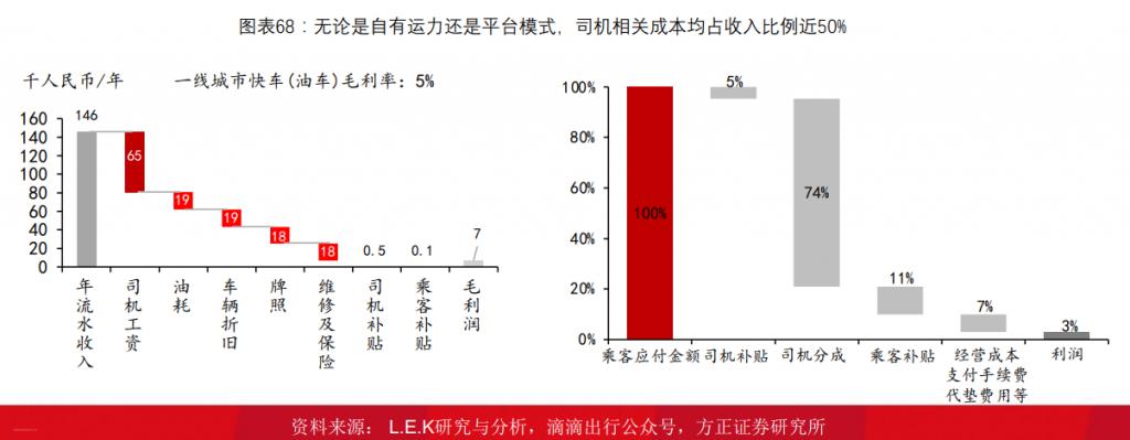 根據測算,滴滴的年流水收入中有 80% 左右是司機分成,司機分成又可具體拆分為車的成本和人的成本。