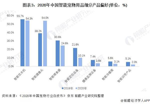 同時,智能飲水機成為了目前我國寵物用品細分產(chǎn)品偏好最多的產(chǎn)品,2020 年占我國智能養(yǎng)寵細分產(chǎn)品偏好的 54.3%。而此次新冠疫情因為隔離問題使得許多主人被迫與寵物分離,讓許多寵物主意識到了對寵物陪伴的重要性,因此,智能攝像頭也成為了我國增長最快的寵物用品。