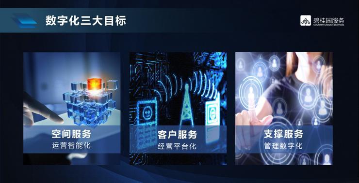 在戰略實施層面,碧桂園服務從 " 空間服務 "、" 客戶服務 "、" 支撐服務 "3 個方面進行數字化建設: