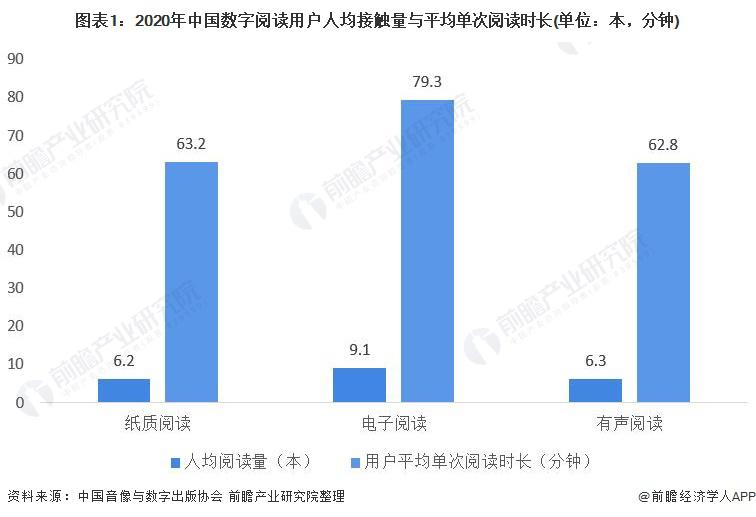 數(shù)字閱讀指的是閱讀的數(shù)字化,與傳統(tǒng)的紙質(zhì)出版物相比,數(shù)字化電子出版物具有存儲(chǔ)量大、檢索便捷、便于保存、成本低廉等優(yōu)點(diǎn),數(shù)字化閱讀日益受到年輕人的歡迎和追捧。相比紙質(zhì)書,目前人們更多地去閱讀電子書和有聲書。根據(jù)中國音像與數(shù)字出版協(xié)會(huì)數(shù)據(jù)顯示,2020 年我國人均電子書閱讀量 9.1 本,人均有聲書閱讀量 6.3 本,兩者接觸量較 2019 年增長 5.5%,而人均紙質(zhì)書閱讀量僅為 6.2 本,比 2019 年減少 2.6 本。