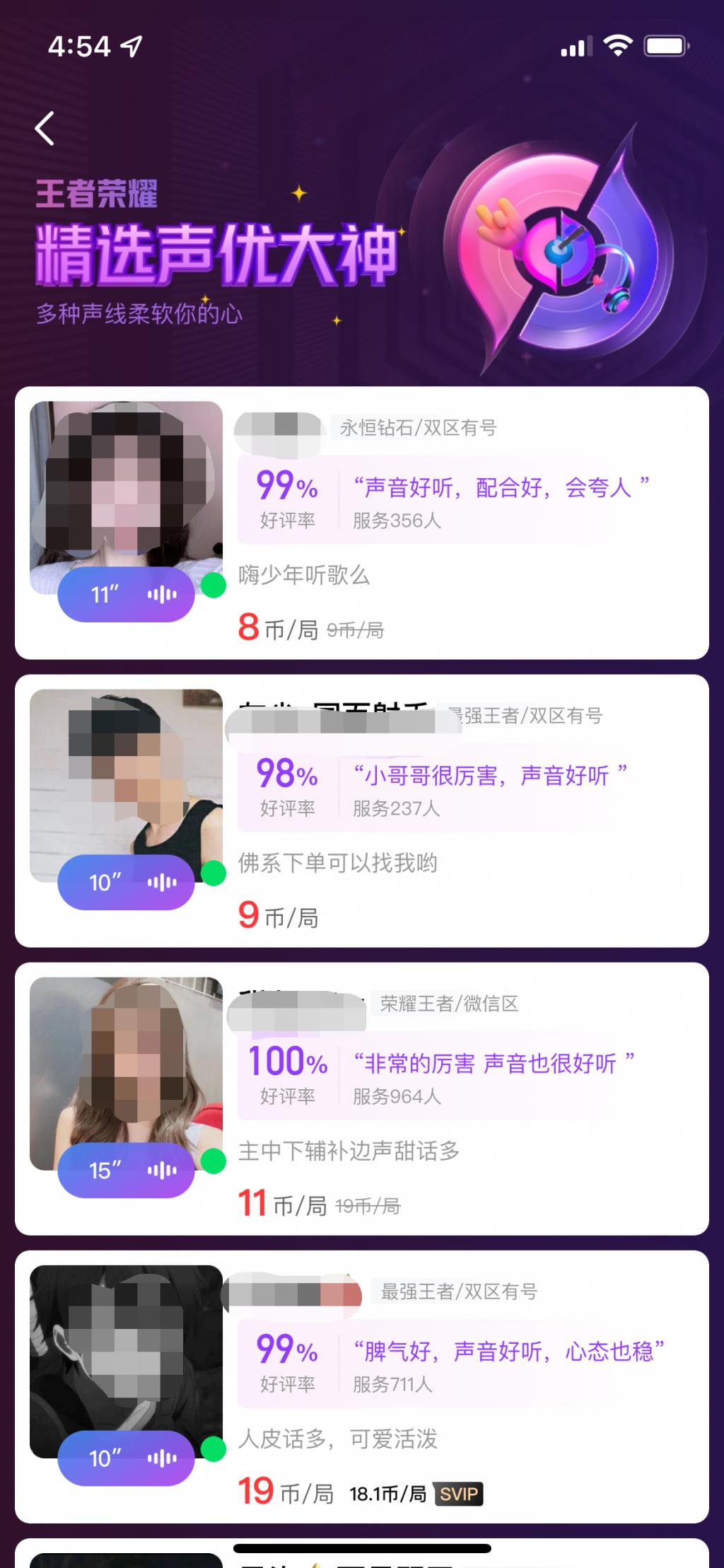 為了讓用戶能夠更方便挑選自己喜歡的陪玩師,陪玩平臺還會對陪玩師們進行分類,比如會根據(jù)音色的不同分成 " 御姐音 "、" 蘿莉音 "、" 清純音 " 等等。好的聲音可以讓陪玩師加分,聲音不好的陪玩師可能就 " 無人問津 ",這個邏輯倒是有點像現(xiàn)實世界里的 " 陌生人 " 社交軟件,只不過指標從臉變成了聲音。