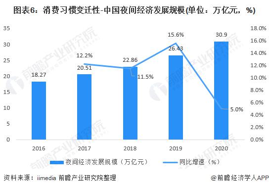 2016 年以來,中國夜間經濟規模快速增長。截至 2020 年底,中國夜間經濟規模突破 30 萬億元,較 2019 年同期增長了 5.0%。而且疫情常態下為了刺激消費,中國各地政府對夜間經濟的扶持力度加大,同時,夜間消費場所的服務市場增加以及人們夜間消費需求的攀升,中國的夜間經濟的發展規模將持續增長。