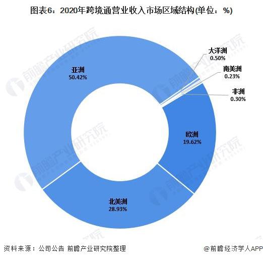 目前,跨境通的跨境電商業務已覆蓋到包括美國、加拿大、英國、德國、俄羅斯、法國、西班牙等全球 200 多個國家與地區。2020 年公司亞洲地區收入達到 85.83 億元,占比 50.42%,是公司主要收入來源地 ; 北美洲地區收入 49.24 億元,占比 28.93%。
