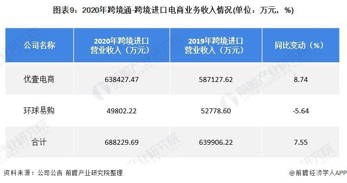 2020 年跨境通跨境進口電商業務實現收入 68.82 億元,同比增長 7.55%。這部分業務收入來自優壹電商和環球易購進口業務,其中優壹電商跨境進口營業收入 63.84 億元,同比增長 8.74%; 環球易購跨境進口營業收入 4.98 億元,同比下降 5.64%。