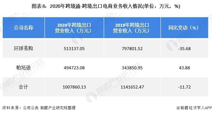 2020 年,跨境通跨境出口電商業務實現營業收入 100.79 億元,同比下降 11.72%,這部分收入主要來自環球易購和帕拓遜。其中,環球易購跨境出口營業收入 51.31 億元,同比下降 35.68%; 帕拓遜跨境出口營業收入 49.47 億元,同比增長 43.88%。