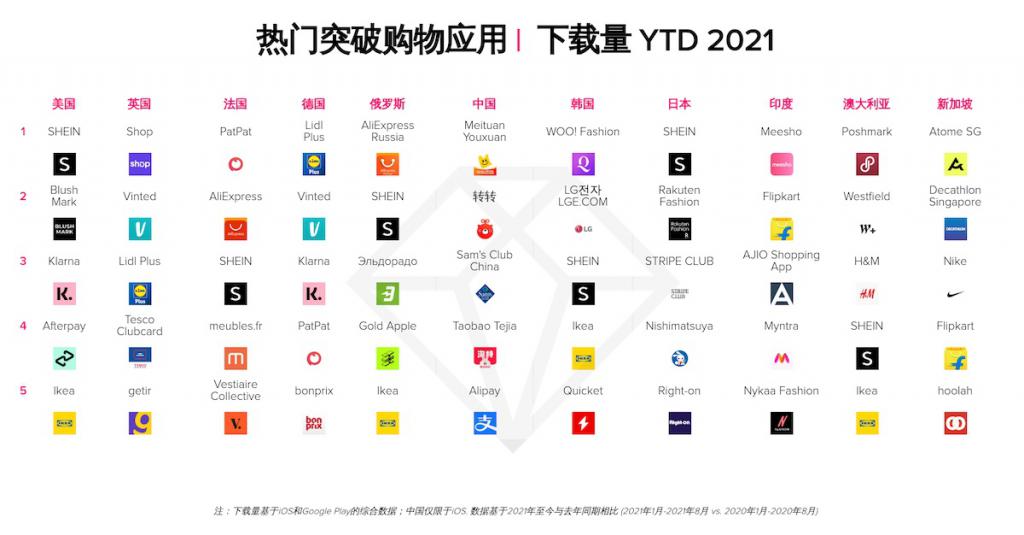 在韓國,Queenit 抵御了移動電子商務(wù)市場領(lǐng)導(dǎo)者 SHEIN 的挑戰(zhàn)(排名第三)。但在其他地區(qū),該應(yīng)用仍然占據(jù)主導(dǎo)地位。SHEIN 在日本的突破性購物應(yīng)用排行榜中名列前茅。這是該產(chǎn)品的另一項(xiàng)矚目成績,也使 Shein 成為全球最大的在線時(shí)尚公司,還有部分要?dú)w功于僅在 2021 年上半年,SHEIN 在 iOS 和 Google Play 上的應(yīng)用下載量就達(dá)到了 7600 萬次。