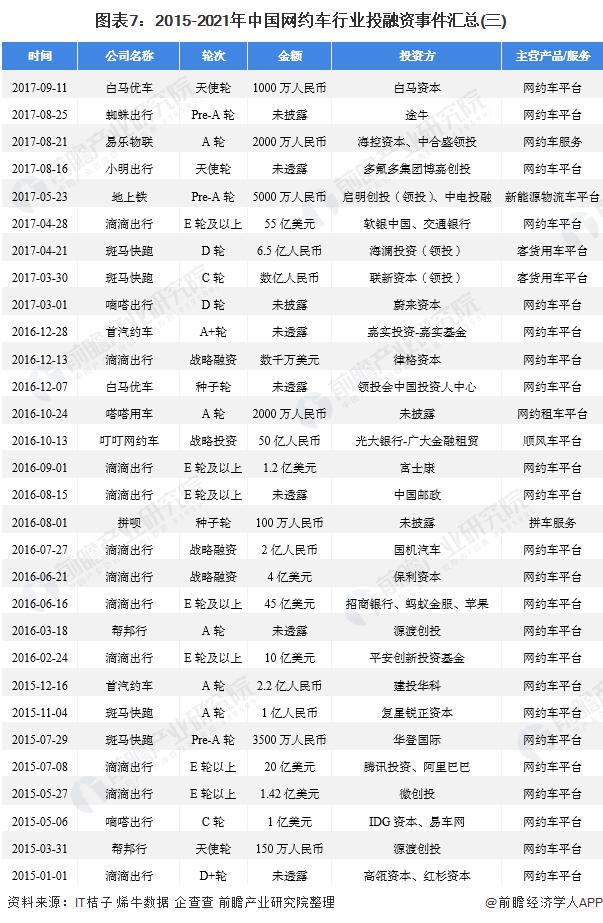 2015 年 -2021 年我國網約車行業(yè)的主要投融資事件如下: