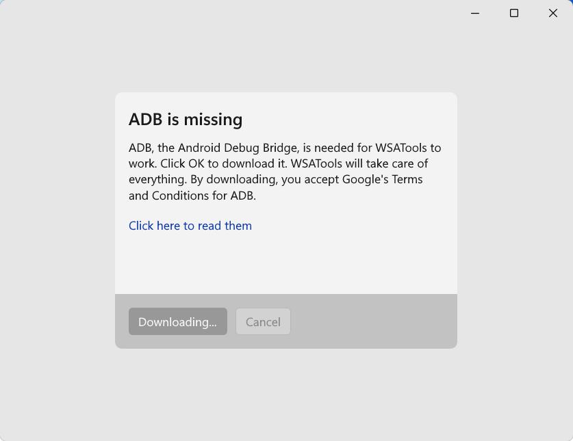 一位意大利開發者 Simone Franco 開發了圖形界面工具 WSATools,它讓 APK 安裝變得簡單:只需雙擊一下就可以,不需要了解和安裝 ADB。如果在你的 PATH 中已經有了 ADB 包,它將直接調用。
