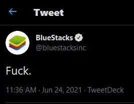 WSA 消息一出,各大安卓模擬器廠商都在顫抖。有個梗圖(假的)說藍疊(Bluestacks)在推特發了一條消息:"Fuck"。