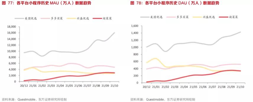 所以東方證券將這三家按照下沉程度做了排序,即多多買(mǎi)菜>美團(tuán)優(yōu)選>淘菜菜。