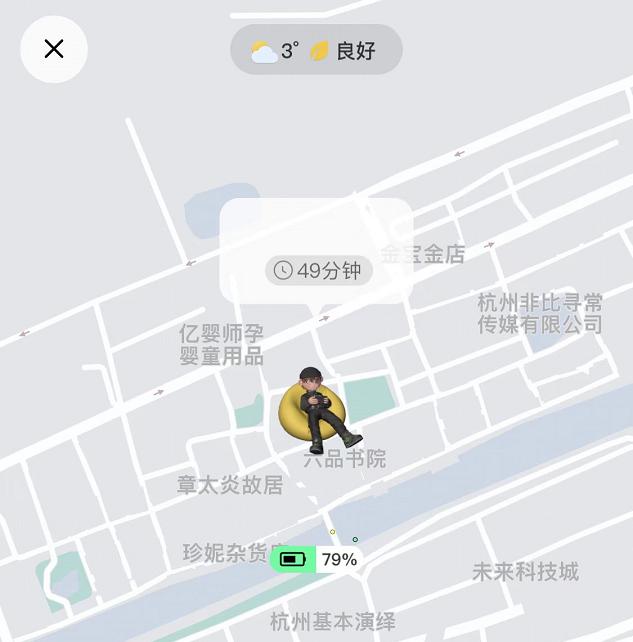 如果你開放了定位、手機(jī)狀態(tài)、天氣等功能,在點(diǎn)擊人物形象之后,還可以看到好友非常具體的信息。