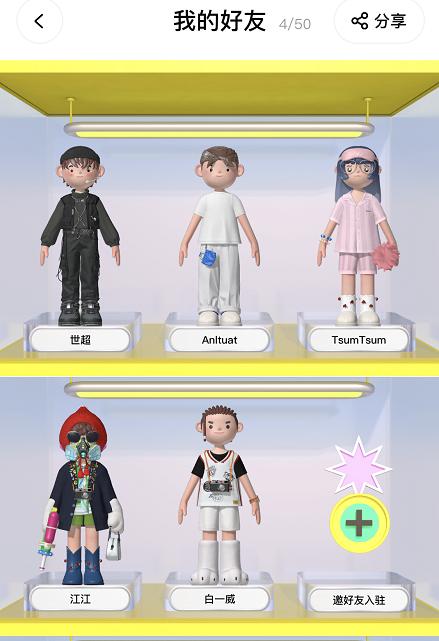 另外啫喱的好友列表,非常像一個(gè)手辦柜,每添加一個(gè)好友就會(huì)在手辦柜上增加一個(gè)小人,而啫喱的好友上限是 50 人。