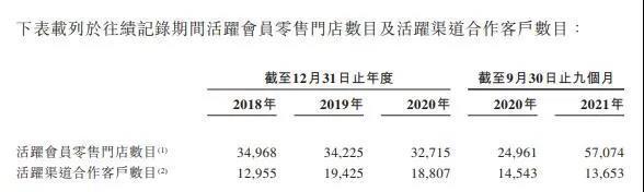 招股書顯示,2018 年、2019 年及 2020 年,匯通達主要從事家用電器分銷的活躍會員零售門店分別為 21686 家、18307 家及 16863 家,不斷下降。
