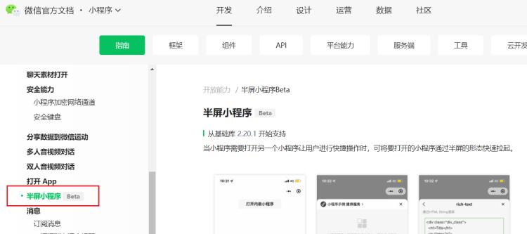 微信小程序官方開發文檔近日上線了一個新功能,將支持 " 半屏小程序 " ,該功能目前還處于內測階段。