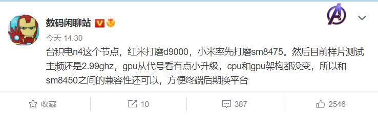 " 臺積電 4nm 節點上,Redmi 在打磨天璣 9000 芯片,小米率先打磨高通 SM8475 芯片。然后目前樣片測試主頻還是 2.99GHz,GPU 從代號看有點小升級,CPU 和 GPU 架構都沒變,所以和 SM8450 之間的兼容性還可以,方便終端后期換平臺。"