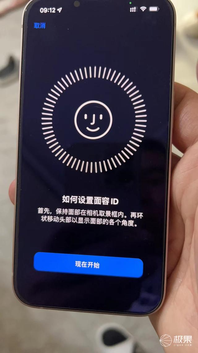 選擇 " 佩戴口罩識別面容 ID" 之后,系統會重新采集你的面容信息,這一步的操作流程跟正常采集面容完全一致。不過需要注意的是,這一步操作并不需要佩戴口罩。
