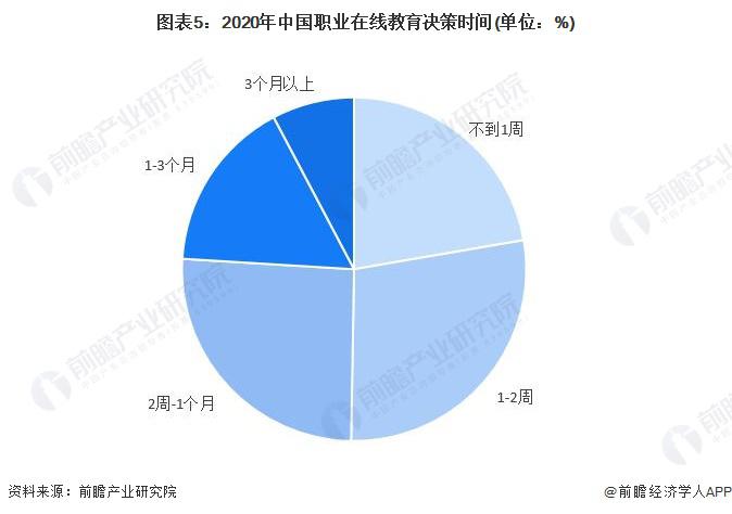 從我國職業(yè)在線教育的決策時(shí)間來看,大多數(shù)用戶的決策周期在 1-2 周,或者 2 周 -1 個(gè)月,用戶較為理性穩(wěn)重。