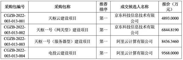 與國(guó)家電網(wǎng)的合作中,阿里拿下的是電投云和天樞一號(hào)(服務(wù)器型)項(xiàng)目,京東收獲的是天樞云和天樞一號(hào)(網(wǎng)關(guān)型)建設(shè)項(xiàng)目。