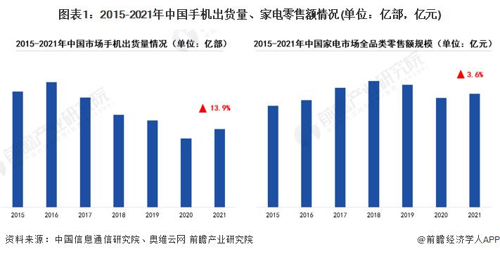 根據中國信息通信研究院和奧維云網統計數據,2021 年中國手機和家電市場均有所回暖。2021 年中國市場手機出貨量為 3.51 部,同比增長 13.9%;2021 年中國家電市場全品類零售額規模為 7603 億元,同比增長 3.6%。