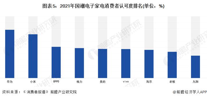 根據 2021 年 10 月《消費者報道》發布的調研統計數據,在電子和家電品牌中,有 59.3% 的受訪者首先想到了華為,有 52.7%、36.3% 及 28.6% 的受訪者首先想到了小米、OPPO 和格力。