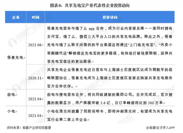 2020 年以來,共享充電寶產業代表性企業的動向主要包括并購、上市、跨界合作和拓寬合作伙伴增加渠道方面。共享充電寶產業代表性企業最新動向如下: