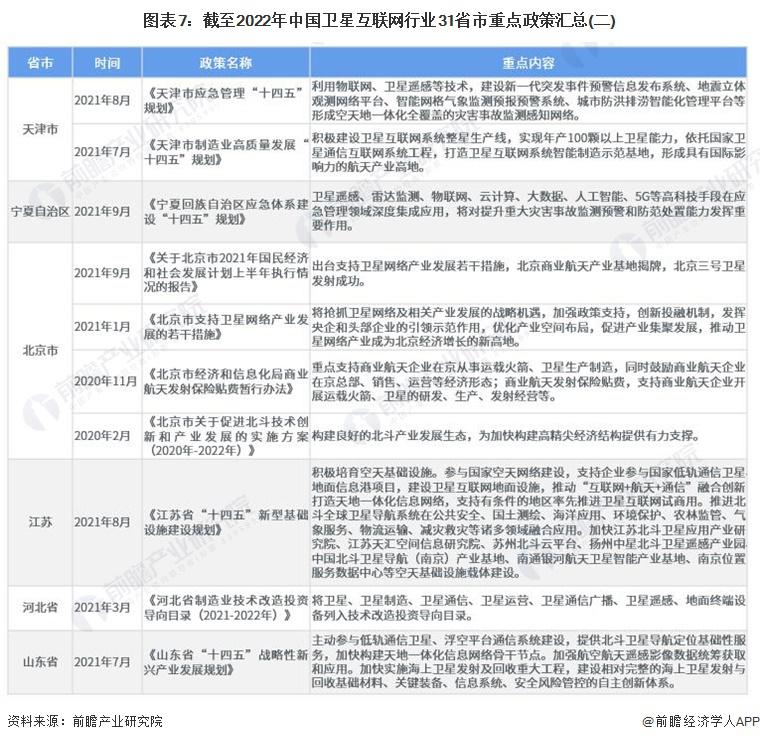 隨著北斗三代衛星導航系統的全面建成以及十四五規劃的發布,各省市針對衛星互聯網行業也做出了相應規劃,出臺新的政策指導行業更好更快發展。