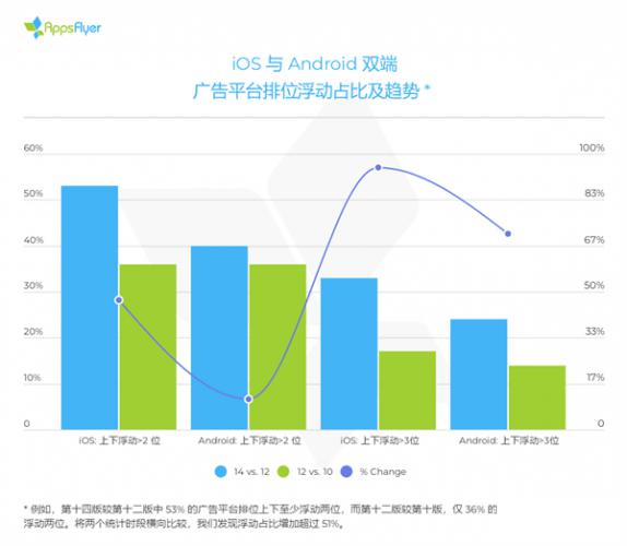 根據 AppsFlyer 發布的第十四版《廣告平臺綜合表現報告》顯示,將 2021 年下半年與 2020 年下半年對比來看,共有 25% 的廣告預算已經從 iOS 端流向安卓端。該報告中指出,蘋果 ATT 對于互聯網廣告行業堪稱 " 巨變 "。