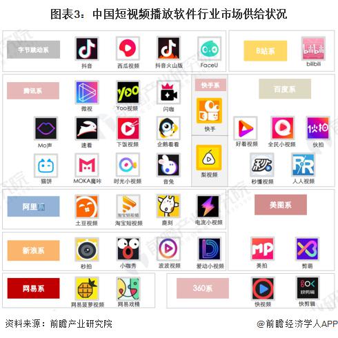 目前我國短視頻行業企業主要有字節跳動系、B 站系、騰訊系、快手系、百度系、阿里系、新浪系、美圖系、網易系和 360 系。其中,當前最火的視頻平臺之一——抖音屬于字節跳動系 ; 快手短視頻屬于快手系。不同派系的布局的短視頻產品情況如下: