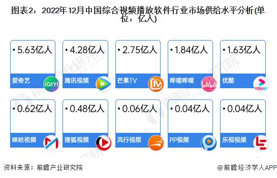 2022 年,中國綜合視頻播放軟件行業市場主要平臺有愛奇藝、騰訊視頻、芒果 TV、嗶哩嗶哩、優酷等。行業主要參與者及各平臺 2022 年 12 月活躍人數如下: