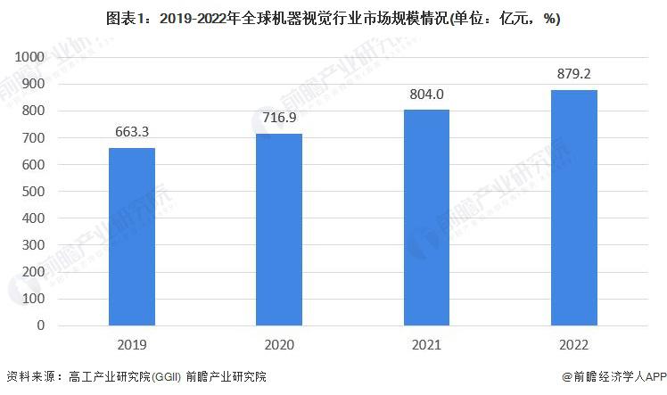 根據高工產業研究院 ( GGII ) 的數據,2021 年全球機器視覺市場規模約為 804 億元,同比 2020 年增長 12.15%,2022 年市場全球機器視覺市場規模初步統計為 879.2 億元。