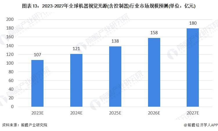 從機器視覺光源 ( 含控制器 ) 的市場規模發展趨勢來看,預計至 2027 年全球機器視覺光源 ( 含控制器 ) 市場規模將達到 180 億元。