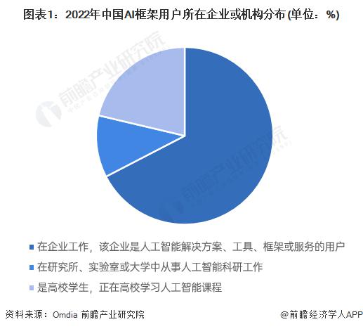 根據 Omdia 的數據,在中國直接參與人工智能技術、人工智能框架或人工智能應用開發,或以非技術角色參與人工智能項目管理群體中,超過 67% 用戶來自于企業,11% 用戶是在研究所、實驗室或大學中從事人工智能科研工作,21% 是在校學生,正在高校學習人工智能的課程。
