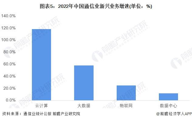 據《2022 年通信業統計公報》數據,2022 年,電信業務收入累計完成 1.58 萬億元,比上年增長 8%。其中,數據中心、云計算、大數據、物聯網等新興業務快速發展,2022 年共完成業務收入 3072 億元,比上年增長 32.4%,在電信業務收入中占比由上年的 16.1% 提升至 19.4%,拉動電信業務收入增長 5.1 個百分點。其中,數據中心、云計算、大數據、物聯網業務比上年分別增長 11.5%、118.2%、58% 和 24.7%。