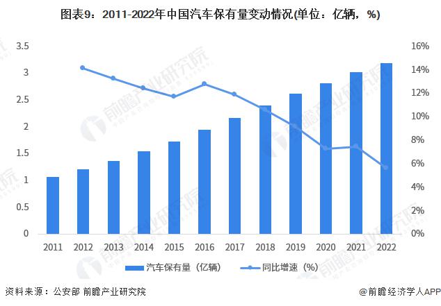 據公安部統計,2017 年全國機動車保有量突破 3 億輛,汽車保有量突破 2 億輛。2020 年中國汽車保有量超過美國,成為全球單一國家汽車保有量最大的國家。2021 年機動車保有量進一步增加,達 3.95 億輛,其中汽車 3.02 億輛。截至 2022 年底,全國汽車保有量 3.19 億輛,同比增長 5.63%。