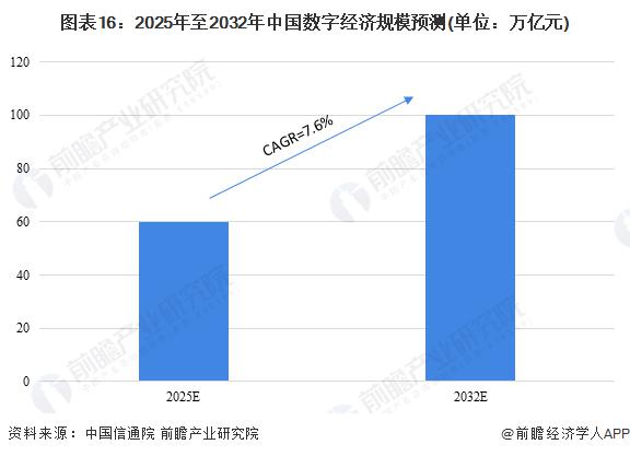 根據中國信通院,到 2025 年,我國數字經濟規模預計將突破 60 萬億元,數字經濟投入產出的效率將提升至 3.5。到 2032 年,將超過 100 萬億,十年間增長將超過 50 萬億元。